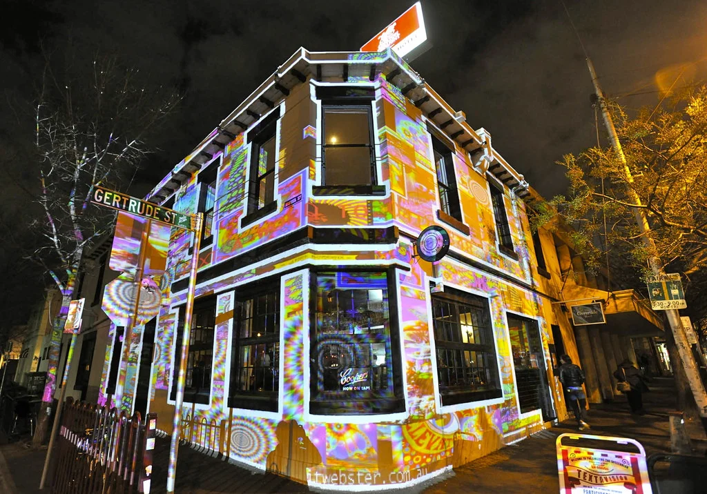 McClelland Gallery version of Enigmatica, projected onto laser cut perspex.