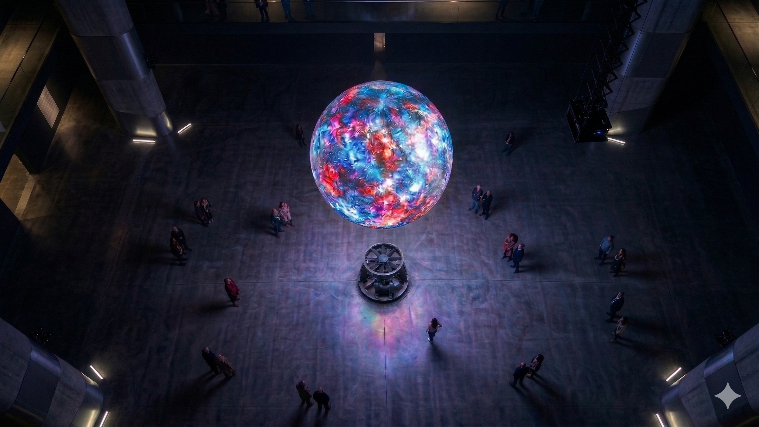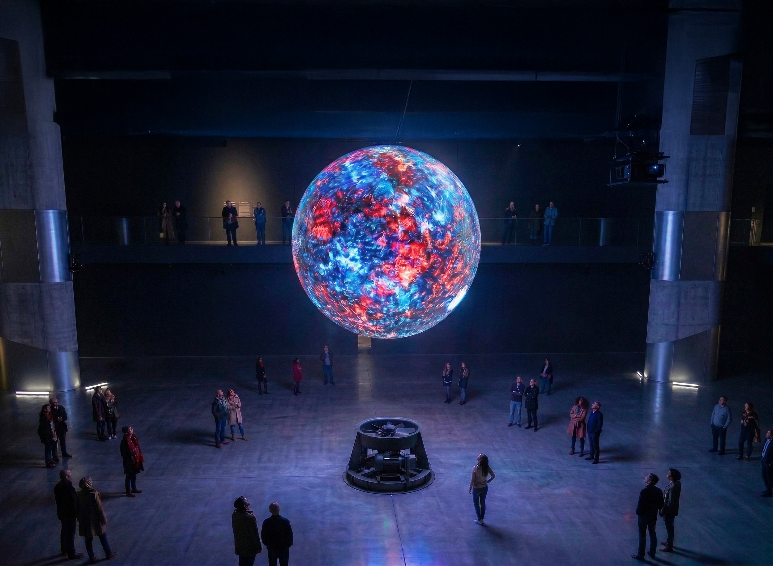 Conceptually, the work addresses a defining preoccupation of our moment — the emergence of artificial superintelligence and its implications for human perception, agency, and meaning. Rather than illustrating this theme didactically, Orbital seeks to evoke it somatically: through scale, sound, darkness, and the visceral strangeness of a massive object hovering in apparent defiance of physical law. The sphere, as a fundamental mathematical form, carries a quiet but undeniable gravitas — at once cosmological and deeply intimate. It functions as a site of contemplation, inviting audiences into a meditative encounter with forces — gravitational, computational, existential — that are ordinarily invisible.